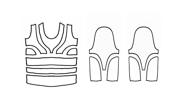 There are documentation work of the garment being made. It first starts from the lace detailing, from both left, right and back. Then, attaching the lace jersey to the black jersey.